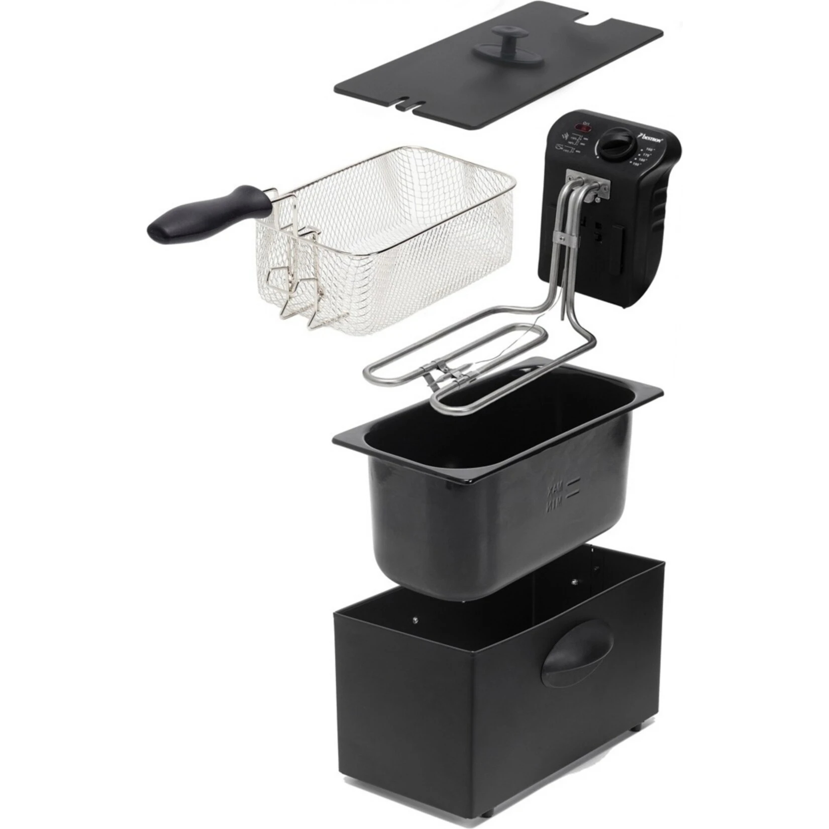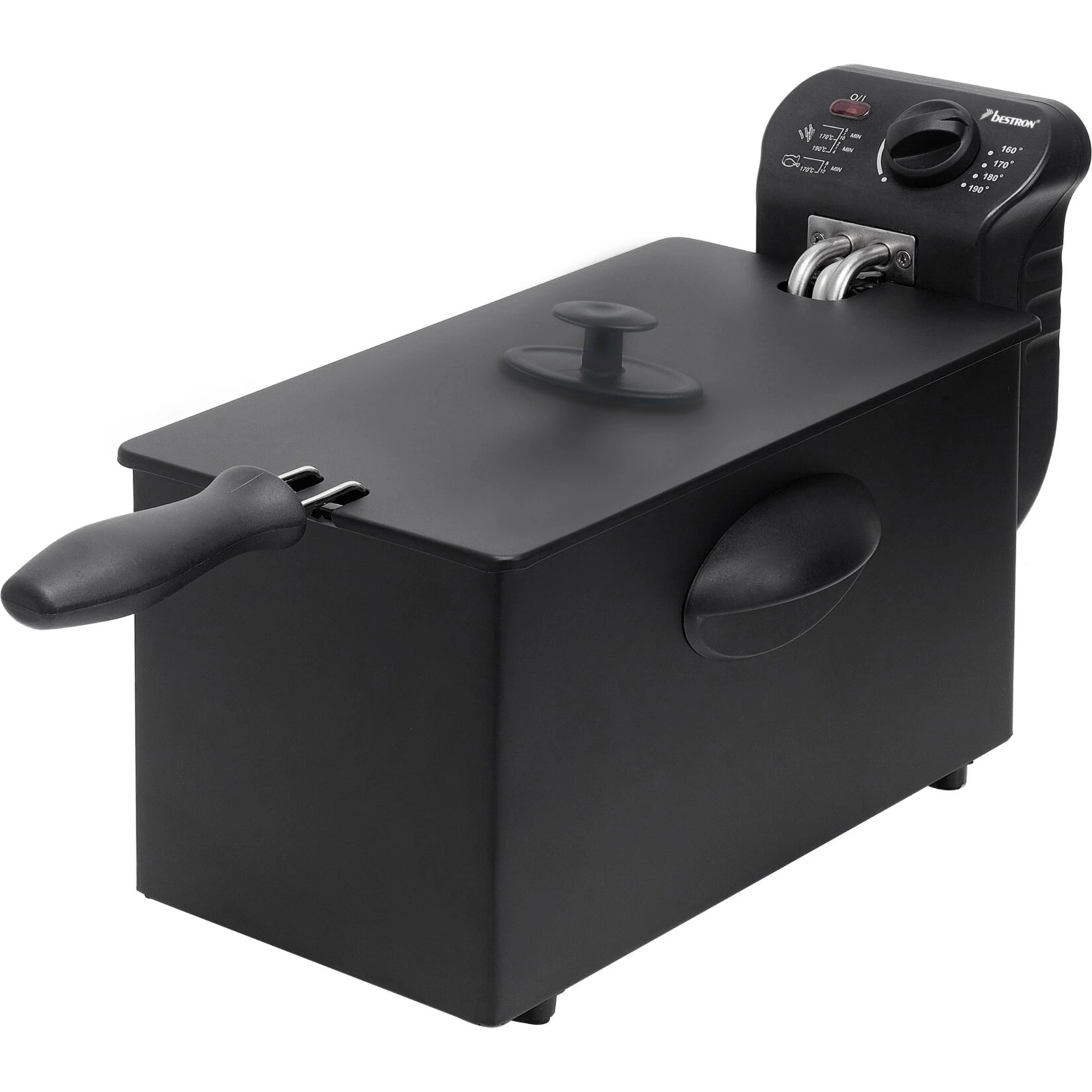 Die Bestron Fritteuse AF357B ist eine besonders praktische Fritteuse: Der Deckel ist abnehmbar. Die Temperatur des Frittierfettes lässt sich außen am über einen Drehregler einstellen. Die Fritteuse AF357B eignet sich bestens für Pommes Frites, Snacks, Fisch und vieles mehr. Sicheres Heben und Senken des Fritierkorbes ist durch den wärmeisolierten Griff möglich. Die Fritteuse AF357B ist leicht zu reinigen und ein austauschbarer Fettfilter sorgt für Hygiene des Gerätes.