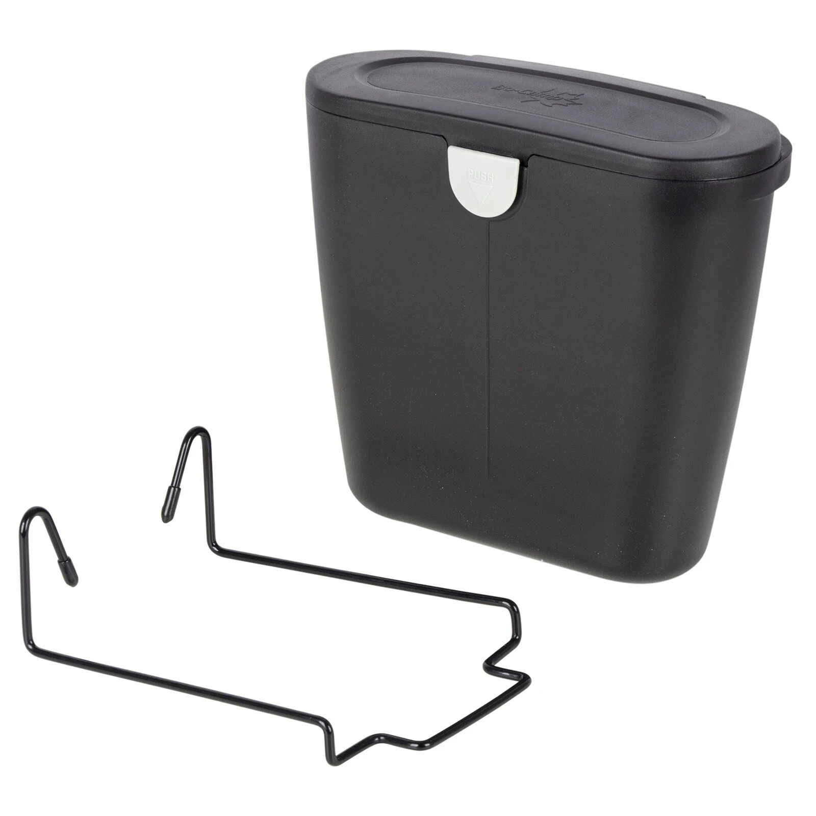 Der Clou dabei: Der Mülleimer kann dank des Klammersystems auf der Rückseite eines Autositzes befestigt oder mit der separat erhältlichen Wandhalterung auch in einem Wohnwagen-Küchenschrank montiert werden. Der Müllbehälter wird mit einem Deckel verschlossen.