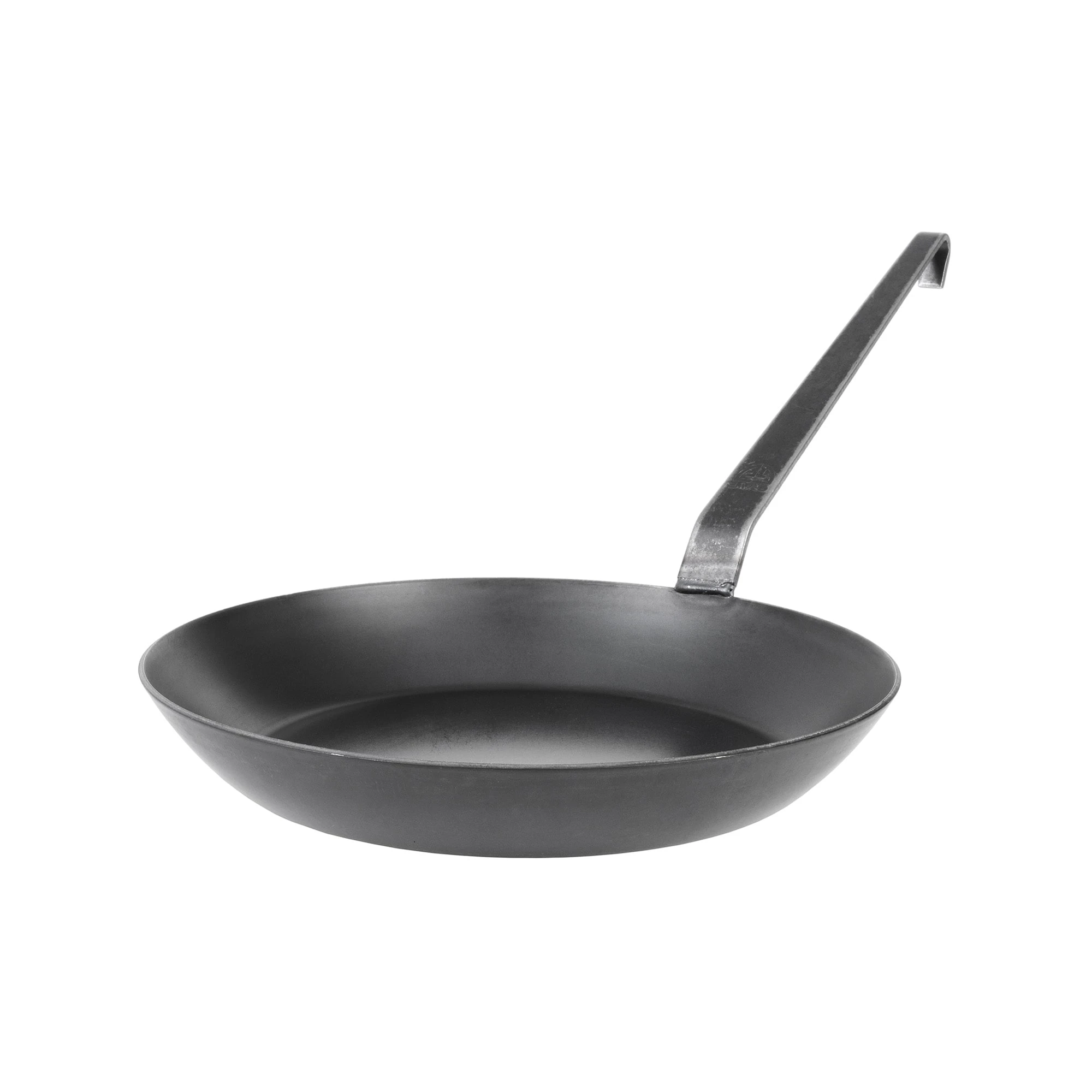 Schmiedeeiserne Bratpfanne mit hohem Rand, unbeschichtet, mit glattem Innenboden.