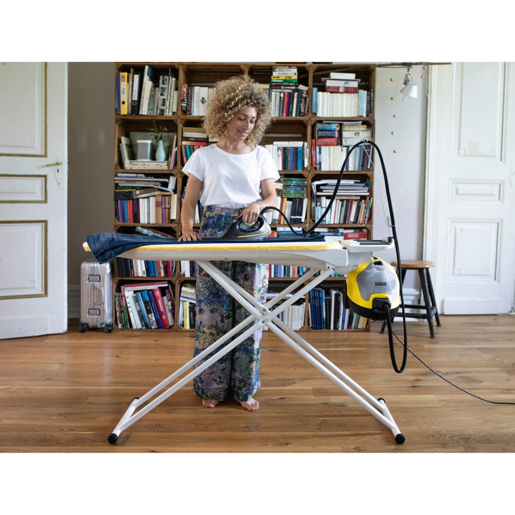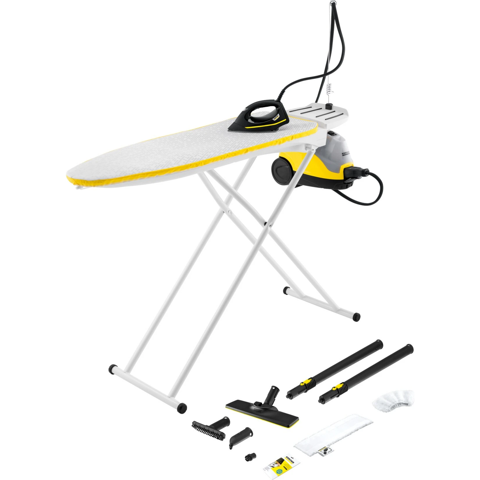Mit Kärcher wird das Dampfreinigen und Dampfbügeln noch effektiver. Die SI 4 EasyFix Iron Bügelstation reduziert die übliche Bügelzeit dank Dampfdruck-Bügeleisen und Bügeltisch um 50 Prozent. Durch Einhängen des Dampfreinigers in den Bügeltisch verschmelzen beide Geräte zu einer starken Einheit. Der Aktiv-Bügeltisch verfügt über eine Aufblasfunktion und eine Aktiv-Dampfabsaugung. So kann der Dampf die Wäsche noch besser durchdringen – und selbst schwierige Textilien lassen sich faltenfrei bügeln. Die Dampfreinigerfunktion bietet höchsten Komfort, reinigt ganz ohne Chemie und ist praktisch überall einsetzbar. Fliesen, Kochfeld, Dunstabzugshaube und sogar kleinste Ritzen werden dank Spezialzubehör strahlend sauber. Selbst hartnäckige Verschmutzungen sind im Handumdrehen beseitigt. Die Bodendüse EasyFix mit flexiblem Gelenk sorgt für höchste Ergonomie und dank der Lamellentechnologie für perfekte Reinigungsergebnisse. Durch das komfortable Klettsystem lässt sich das Mikrofaser-Bodentuch einfach und schnell an der Bodendüse fixieren und ohne Schmutzkontakt entfernen.
