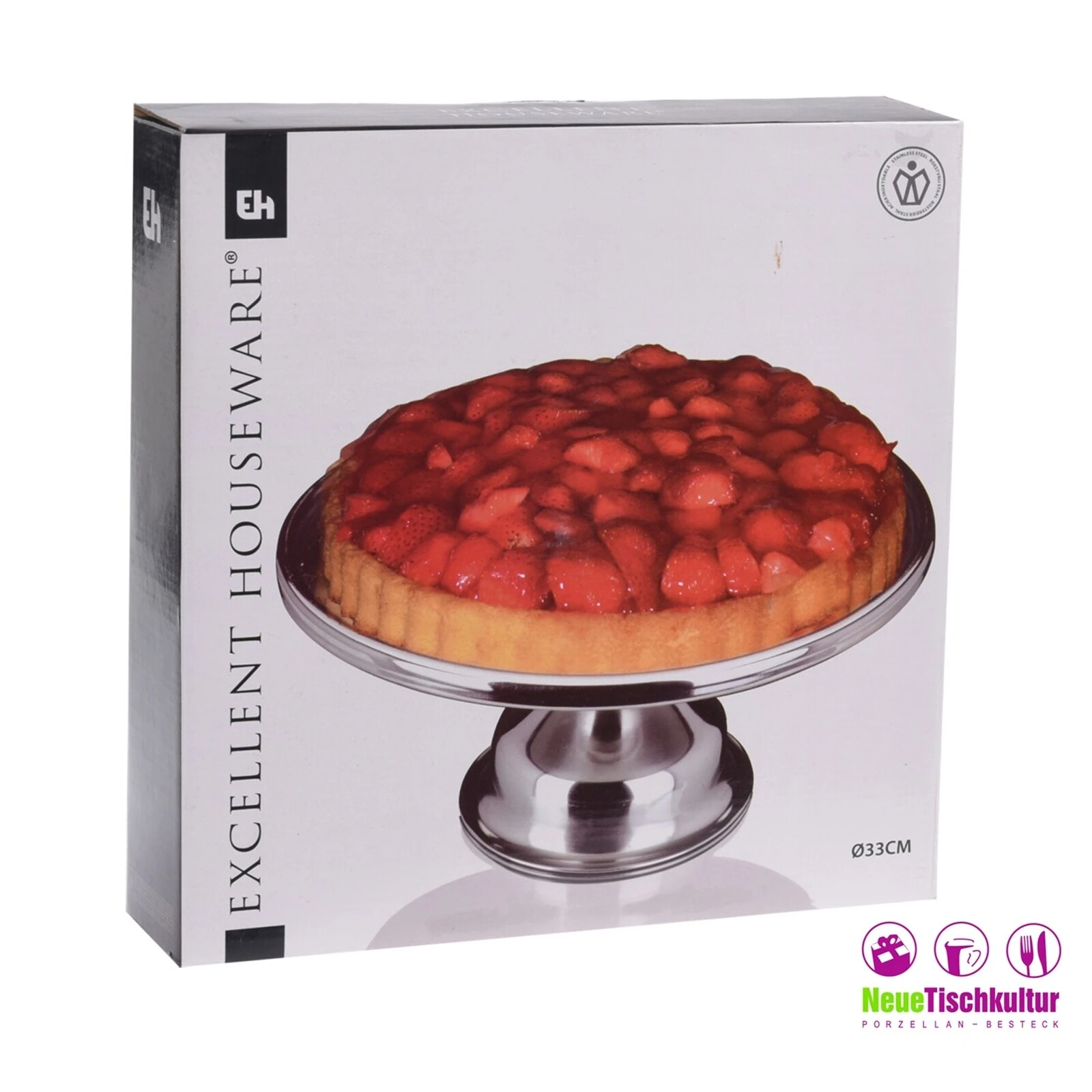Diese klassische Tortenplatte mit Fuss wurde aus rostfreiem Stahl hergestellt und eignet sich zum Servieren von Torten, Kuchen und Früchten. Elegante Ausführung passt zu modern eingerichteten Innenräumen. Die Tortenplatte verfügt über einen stabilen Fuß, der sich auch abdrehen läßt. Die Tortenplatte ist einfach zu tragen und spülmaschinengeeignet. Maße: Ø 33 cm H 14 cm