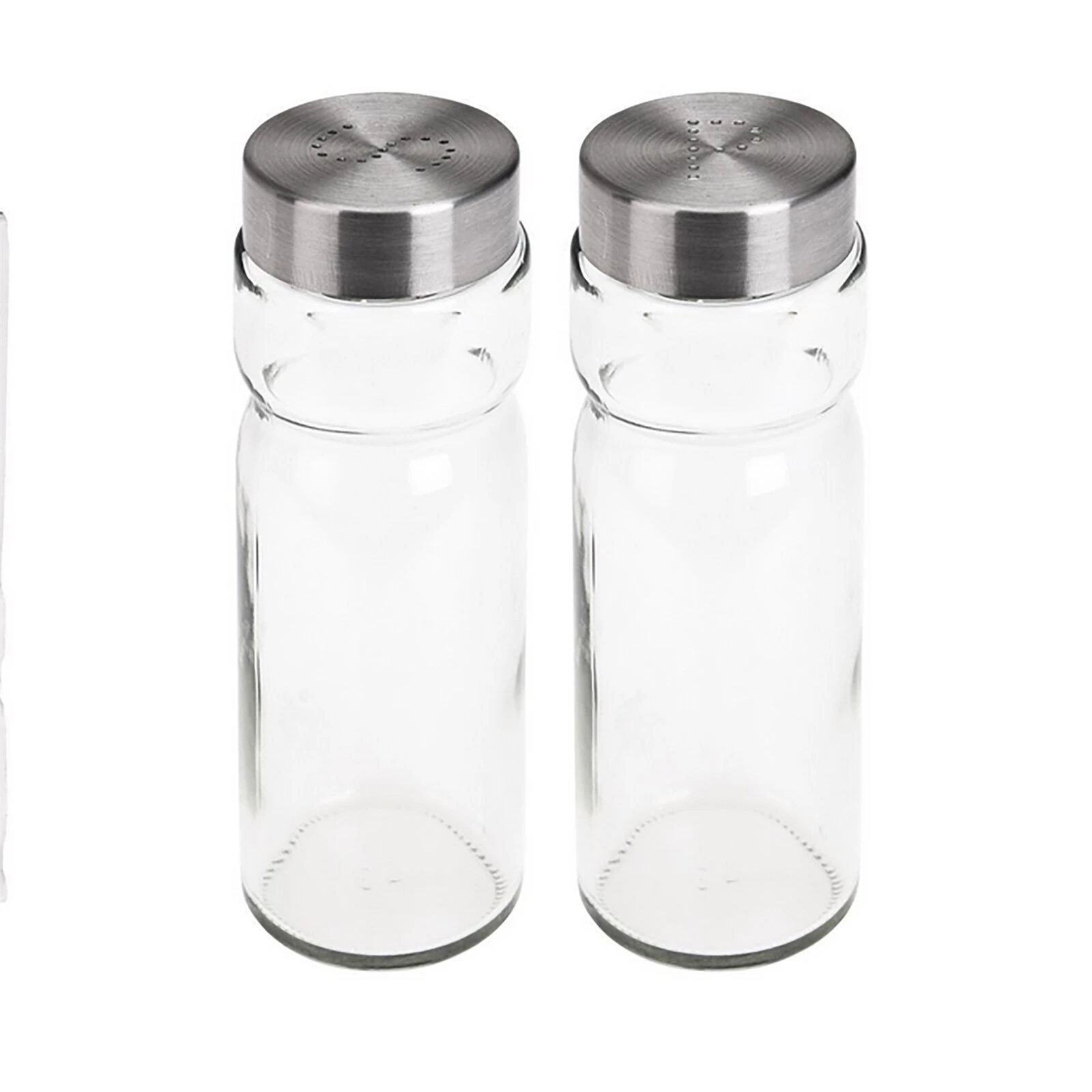Ein Set von Salz- und Pfefferstreuer: Hergestellt aus Glas und mattiertem nichtrostendem Stahl. Sowohl für den täglichen Gebrauch als auch für festliche Frühstücke, Abend- oder Mittagessen geeignet. Empfohlen auch für gastronomische Einrichtungen. Maße: Ø 4 cm H 14 cm Nutzinh. 150 ml