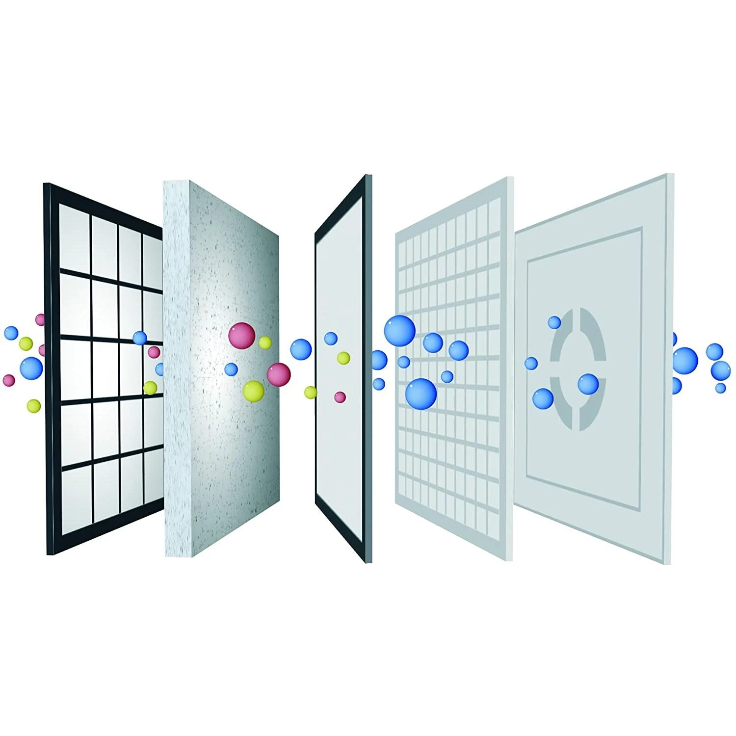 - Effiziente Filterung durch einen Staubfilter, einen HEPA-Filter, der 99% der störenden Partikel zurückhält sowie einen Aktivkohlefilter zur Geruchsbeseitigung.