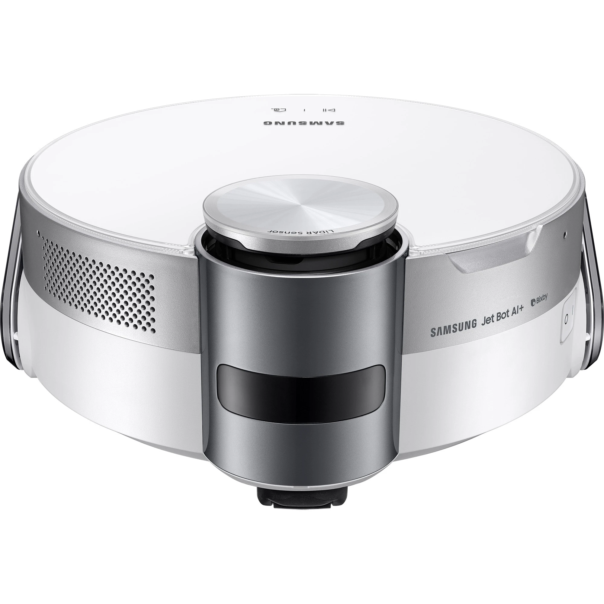 Mit dem Jet Bot AI+ von Samsung kann man eine smarte Art des Saubermachens genießen. Der Jet Bot reinigt das Zuhause, ohne dass vorher jeder Raum auf Hindernisse überprüft werden muss. Der 3D-Sensor scannt mit einer 3D-Tiefenkamera präzise einen großen Bereich. Er kann die Raumstruktur und unterschiedliche Hindernisse erkennen, auch schmale oder kleine Objekte wie Kabel, selbst wenn sie nur 1 cm hoch sind. Dank KI-Objekterkennungstechnologie kann der Saugroboter verschiedene Arten von Gegenständen und Möbeln identifizieren und klassifizieren sowie deren Position speichern. Der Jet Bot AI+ reinigt nahe um Gegenstände herum und hält einen sicheren Abstand zu zerbrechlich erkannten Objekten wie Vasen. Für eine effiziente und gründliche Reinigung ermittelt der LiDAR-Sensor die Position des Jet Bot, indem er die Räumlichkeiten scannt, um so Informationen zu den Entfernungen im Raum zu sammeln. Auf diese Weise kann der Saugroboter noch effizienter eine größre Fläche saugen. Reinige dein Zuhause effizient und kraftvoll mit leistungsstarker Technologie von Samsung. Der Digital Inverter Motor und die Jet Cyclone-Technologie sorgen für eine starke Saugkraft. Die effiziente Bürste reinigt unterschiedliche Arten von Böden inklusive Hart- und Teppichböden gründlich, ohne dass sich viele Haare und Ähnliches um die Bürste wickeln. Der Jet Bot AI+ kann die Art der Oberfläche und die Staubmenge erkennen und passt die Saugkraft automatisch an. So erhöht er bei Teppichen die Saugkraft, um diese gründlich zu reinigen. Nach der Reinigung kehrt der Jet Bot automatisch zur Clean Station zurück, die den Staubbehälter mithilfe der “”Air Pulse””-Technologie automatisch entleert. Mit der SmartThings App kann die Reinigung ausgewählter Räume aus der Ferne geplant werden und No-Go-Zonen eingerichtet werden. Mithilfe des Live-Reinigungsberichts lässt sich zudem in Echtzeit überwachen, wo der Jet Bot AI+ gerade reinigt. Mit der Frontkamera können Videobilder gestreamt werden.