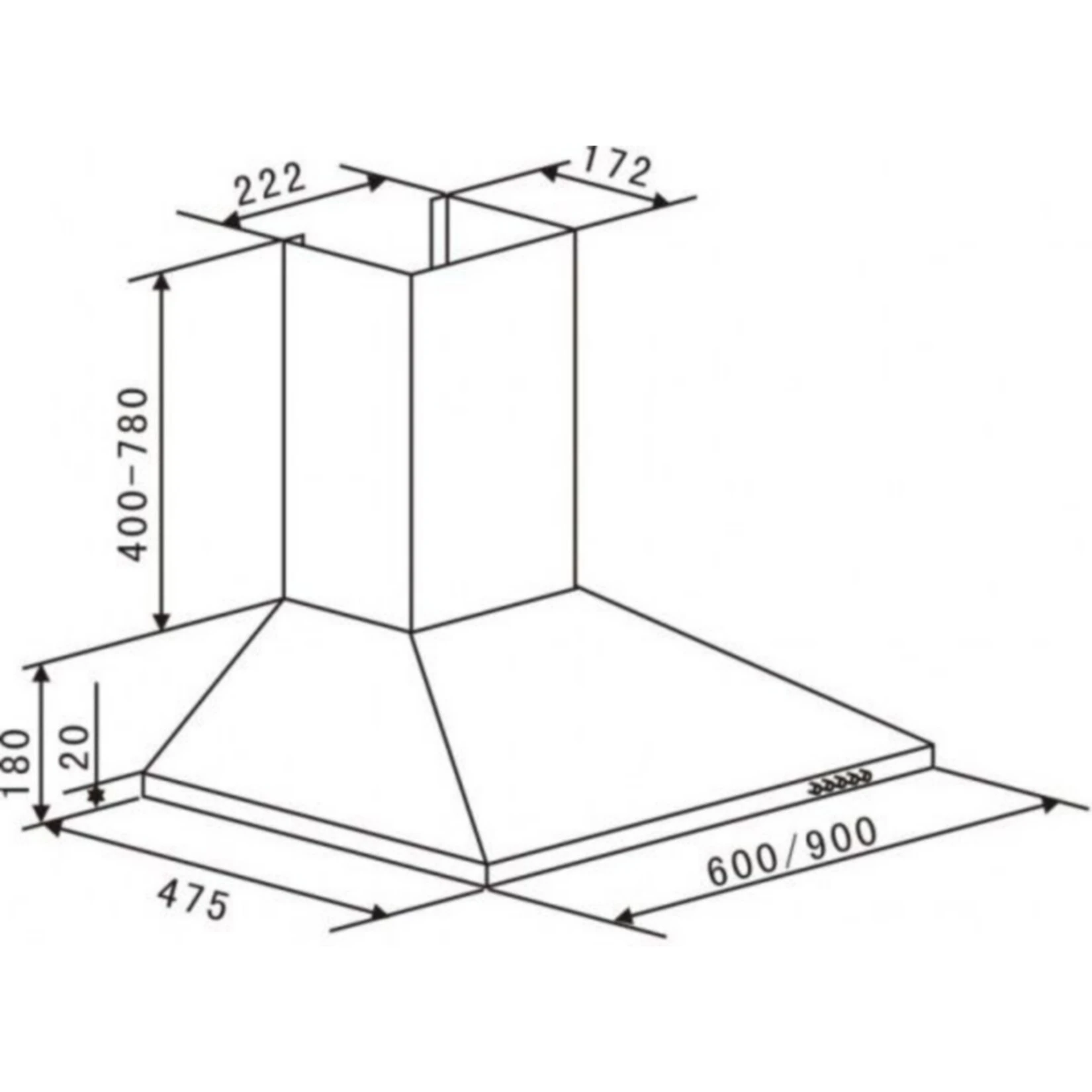 Kamin-Dunstabzugshaube aus Edelstahl mit 2 waschbaren Metallfettfiltern (Spülmaschinenfest).