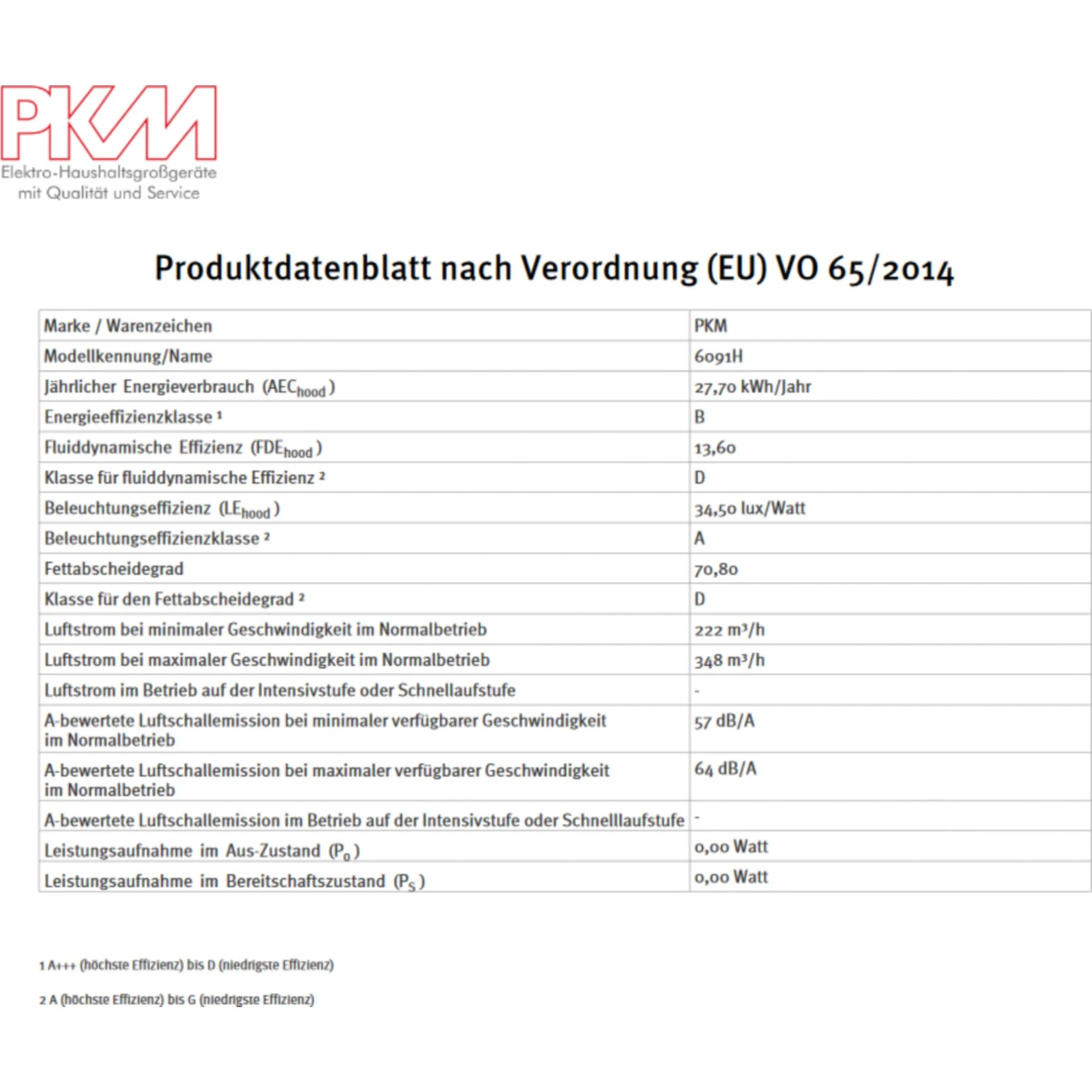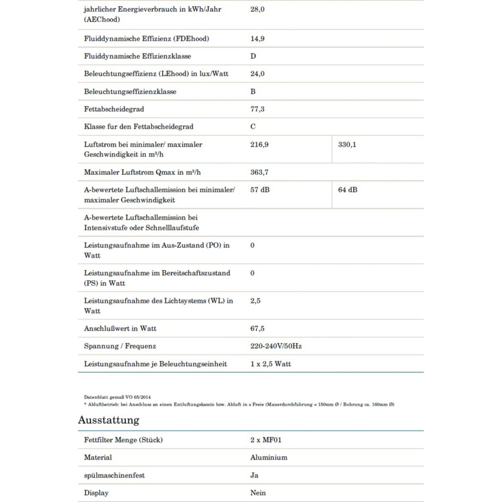 jährlicher Energieverbrauch (AEChood): 27,7 kWh/Jahr