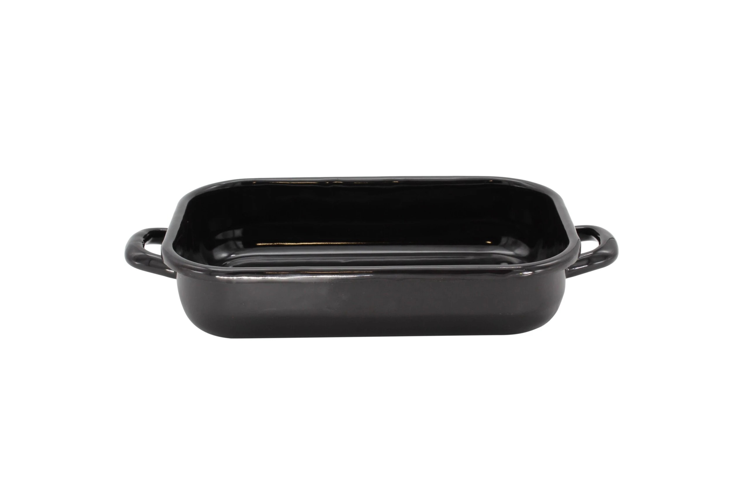 Emaille-Geschirr: Perfekt für gesundes Kochen, Backen und Braten. Das Material Emaille wird aus natürlichen Rohstoffen hergestellt. Alle Lebensmittel behalten in diesem Kochgeschirr ihren natürlichen und reinen Geschmack. Außerdem ist Emaille nickelfrei und daher ideal für Allergiker geeignet. Die porenfreie, glatte Oberfläche ist bakterien- und schmutzabweisend und ermöglicht so eine optimale Hygiene im Haushalt. Mit dem widerstandsfähigen und pflegeleichten Kochgeschirr aus Emaille werden Sie bei sachgemäßem Gebrauch und richtiger Pflege lange Freude haben. Merkmale: vielseitig verwendbar für die Zubereitung von Braten, Lasagne, Aufläufe, Kuchen u.v.m.; innen und außen schwarz emailliert; Maße: ca. L 26,0 x B 18,5 x H 6,0 cm; leicht und mühelos zu reinigen; extrem langlebige, rostfreie, schnitt- und kratzfeste Oberfläche; spülmaschinengeeignet; bis 220°C im Backofen geeignet
